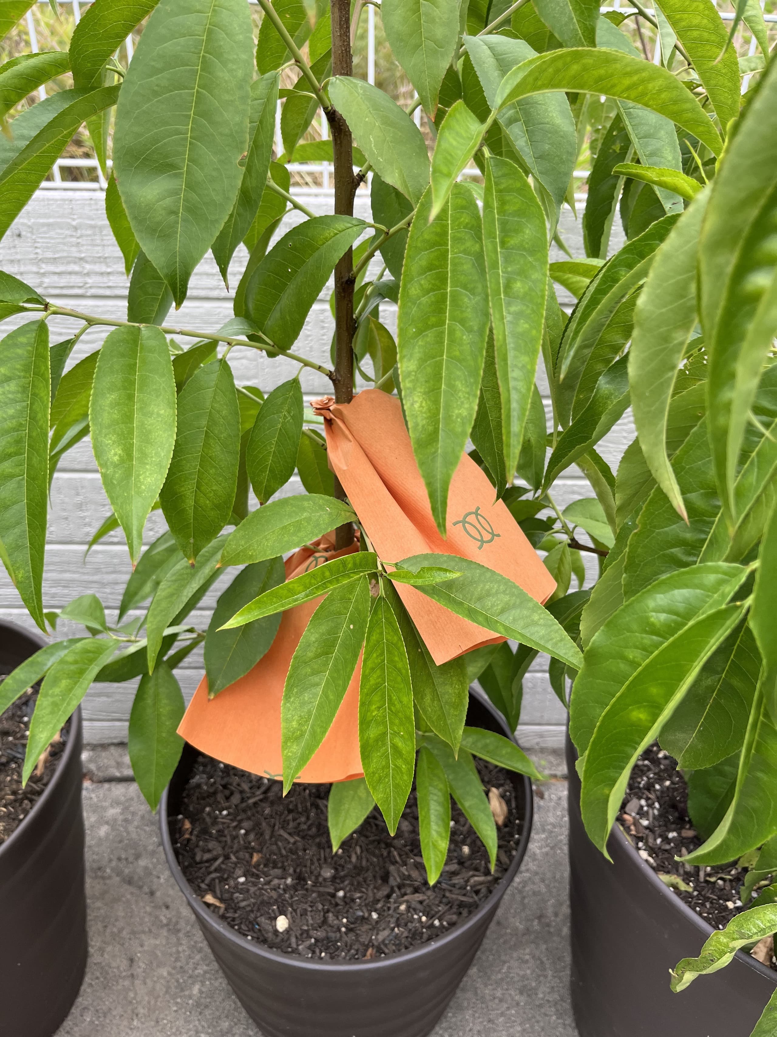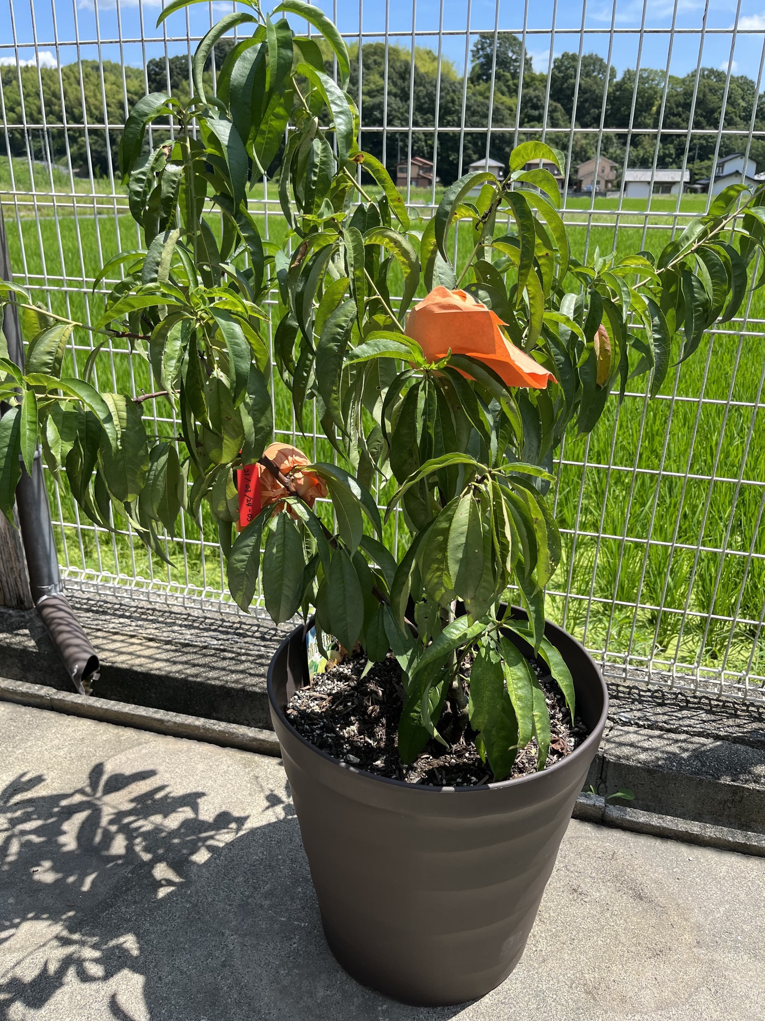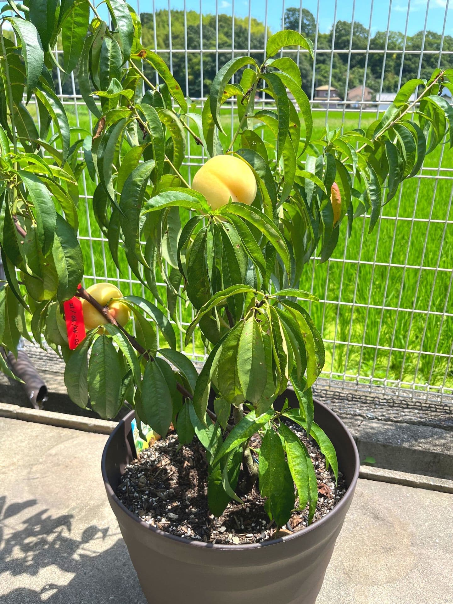 神奈川生まれではありますが、今では岡山を代表する白桃のひとつ「白鳳」の鉢植えです。